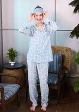 Drift into comfort with our Blue Pastel Heart Print Sleepwear — a dreamy blend of softness and sweetness.