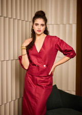 Step into casual sophistication with this maroon linen duo. Crafted from breathable linen, it offers a comfortable, airy feel while maintaining a chic, polished look.