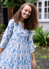 Effortlessly femme and Victorian-inspired in print, this dress is featured in a soft cotton silk fabrication in a Fit-and-flare style.