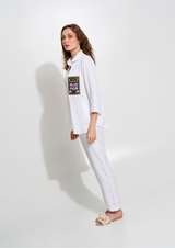 A white shirt crafted in a comfortable and soft fabric, with playful embroidery.