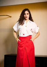 A skirt that is crisply cut with an A line silhouette. The “We-Heart Skirt” is tailored yet relaxed.